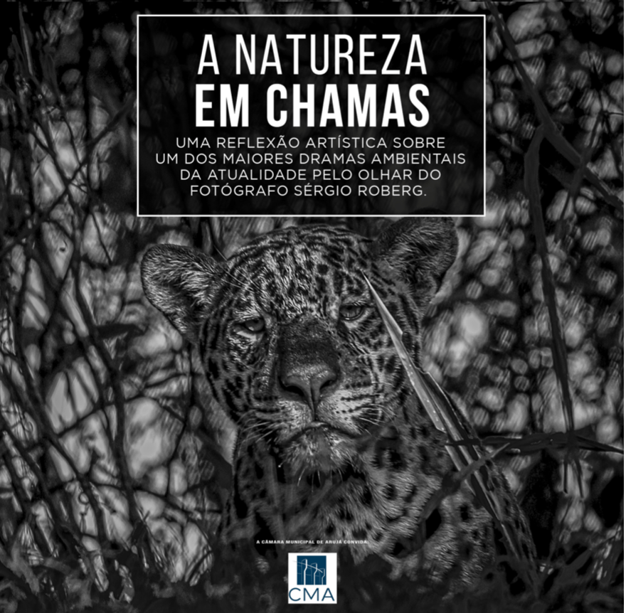 NATUREZA EM CHAMAS, abordou um dos maiores dramas ambientais da Brasil, a queimada das florestas, traduzido na expressão dos animais em dramáticas 18 fotos preto e branco.